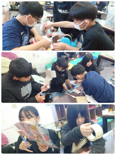 6年生が中心になり、お菓子の箱と綿を使って、楽しんでいました✨