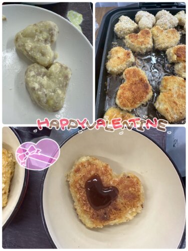 夢学でも、昨日のおやつは…バレンタインコロッケでした🧡