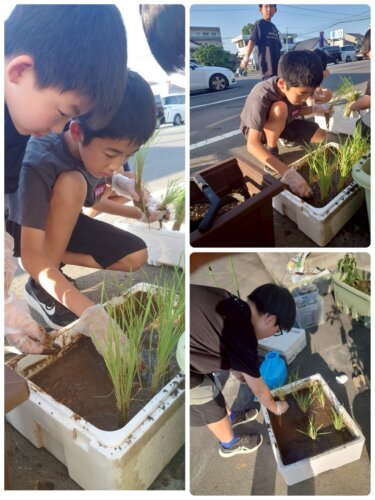 F君兄弟のおじいさんに稲の苗をわけていただき、アドバイスをいただきながら進めていきました😊